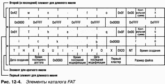 Помимо большего предельного числа кластеров преимуществом FAT32 перед FAT12 и FATl6 является тот факт, что место хранения корневого каталога FAT32 не ограничено предопределенной областью тома, поэтому его размер не ограничен. Кроме того, для большей надежности FAT32 хранит вторую копию загрузочного сектора*. B FAT32, как и в FATl6, максимальный размер файла равен 4 Гб, посколькудлина файла в каталоге описывается 32-битным числом.