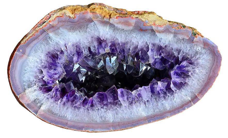 Но что не так с этим камнем? На вид совсем обычный. Таких полно может быть и возле гор, и в чистом поле иногда попадаются. Слегка шершавый на ощупь, какого-то серо-буро-коричневого цвета Но перстень реагирует именно на него. Неужели внутри камня что-то есть? Не раздумывая 'забираю ровно половину камня в хранилище, и медленно офигеваю над открывшейся картиной Полая внутренность камня засверкала красивыми фиолетовыми кристаллами.