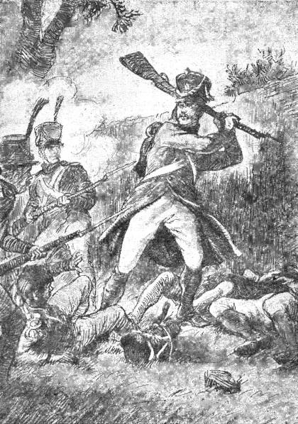 Новичок вертелся среди наседавших французов, как безумный. Он кидался на них очертя голову, осатанело бил куда попало и каждый раз громко крякал, будто раскалывал полено. Он находился в том состоянии боевого исступления, когда кровавый туман застилает сознание, когда уже все нипочем, все можно, все доступно. Он не помнил себя и без малейшего колебания принял смерть, которой так боялся издалека. Он инстинктом следовал совету Коренного наступал на врага только грудью. Он погнался за французским стрелком, в ужасе бежавшим от него в глубь пустыря, и его подстрелили там, как молодого рассерженного оленя, которого не могут взять вручную.