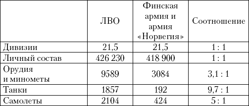 Таблица 25 Соотношение сил на границе с Финляндией
