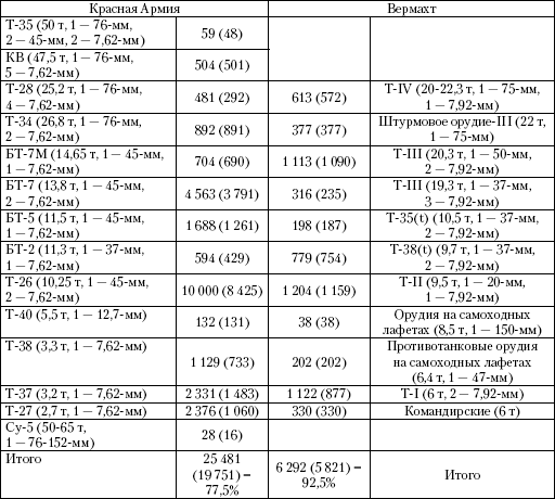 Для полной картины состояния танкового парка вермахта и Красной Армии следует помнить, что в июне 1941 года в СССР было произведено 305 танков, а в Германии 312.