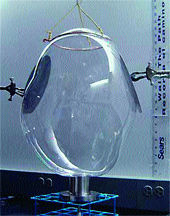 Методика такова: вначале готовится суспензия нанонаполнителя (1% по массе) в полимере. Пленка получается путем выдувания из суспензии огромных пузырей диаметром 35 см и высотой 50 см. Затем пленка может быть нарезана в листы и сложена в несколько слоев. Пока листы композита получаются размером 225 на 300 мм, но ученые надеются «растянуть» их до квадрата со стороной в метр. Одно из достоинств метода Либера состоит в том, что частицы наполнителя распределяются в пленке равномерно, не образуя нежелательные агрегаты. При выдувании пузыря нанотрубки еще и ориентируются в одном направлении, что заметно увеличивает прочностные параметры композита до значений, выше, чем у небезызвестного кевлара, используемого для «пошива» бронежилетов (кевлар впятеро прочнее стали). Материалы, армированные нанотрубками, в предположении разработчиков из Гарварда, могут применяться как наружное покрытие фюзеляжей самолетов и бронетехники, а пленки, наполненные нановолокнами, вполне подойдут для создания дисплеев и сенсорных матриц, способных детектировать газы и болезнетворные микроорганизмы.