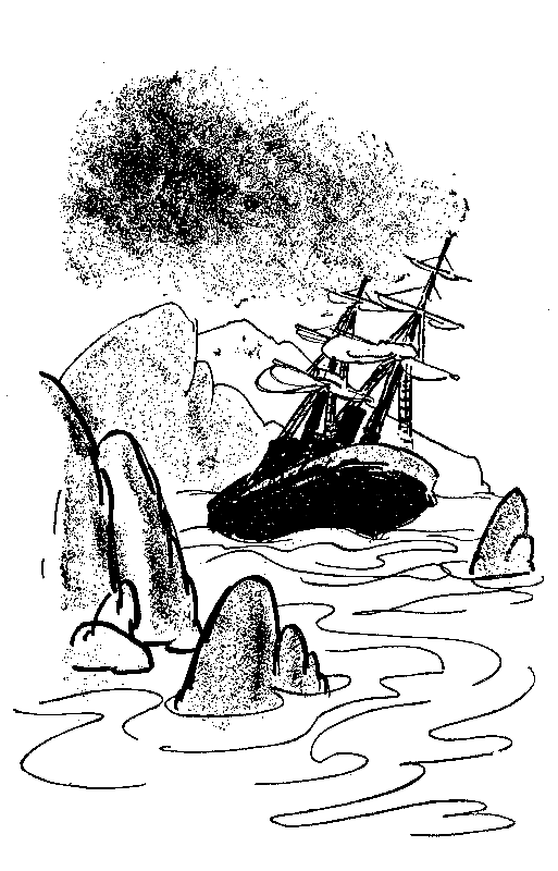 Затарахтели лебедки, натянулись тросы и корабль пополз вперед. Чем ближе к рифам, тем сильнее раскачивало его. Гудас стоял в руле. Босой, темнокожий, с голой головой, в расстегнутой рваной рубашке, он казался одним из тех капитанов-призраков на заколдованных кораблях, о которых ходит столько легенд по всему миру.