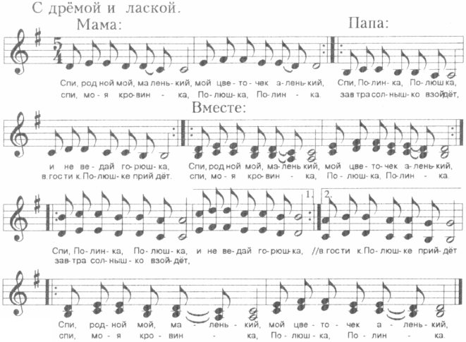 Надеюсь, песенки, появившиеся в нашей семье и полюбившиеся моим дочерям, пригодятся и вам. Мне они помогали не только уложить спать и разбудить детей, но и успокоить, развлечь, поиграть и даже рассмешить.