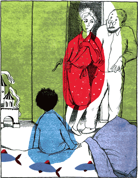 Белокурая женщина и ее муж чмокнули сына, пожелали ему спокойной ночи, выключили свет и на цыпочках вышли из комнаты.