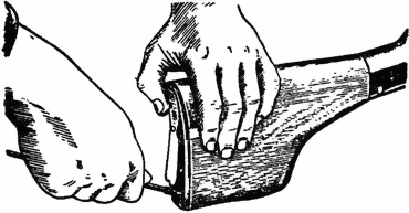 3) Вынуть пенал с принадлежностью. Головкой шомпола или пальцем нажать на защелку крышки затыльника вниз; большим пальцем левой руки повернуть крышку (рис. 3), вынуть пенал с принадлежностью и открыть его.