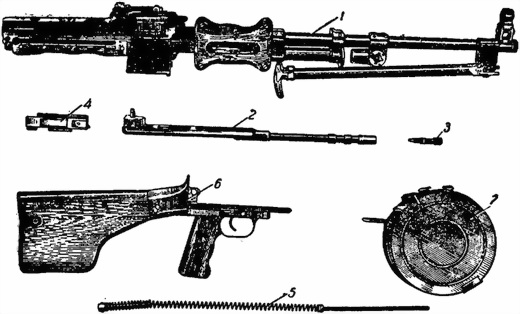 Рис. 2. Основные части и механизмы ручного пулемета:
