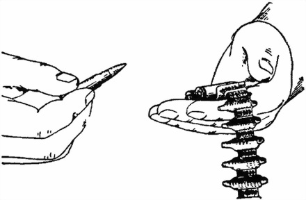 6) Извлекатель не имеет ли наконечник скрошенности выступов для захвата дульца гильзы; прочно ли удерживается стержень и до конца ли ввинчивается он в головку извлекателя.