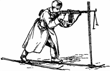 Рис. 54. Стрельба с лыж с использованием палок для упора под локти