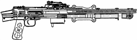 Рис. 32. Положение частей и механизмов пулемета до заряжания