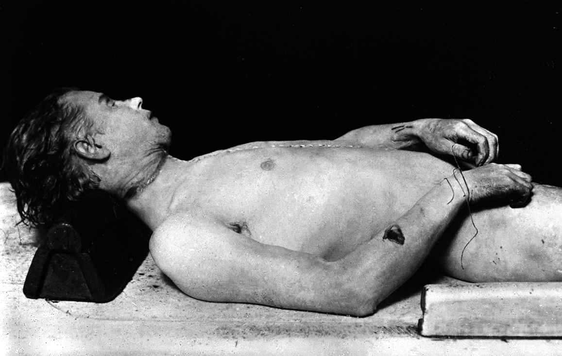 Иллюстрация 10. Тело С. А. Есенина после вскрытия в прозекторской больницы имени А. А. Нечаева (Обуховской).