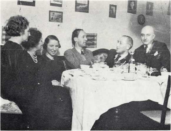 У В. Е. Кокошкиной, Париж 1937 г. Слева направо : Ирина Гуаданини, В. Е. Кокошкина, М. Н. Верещагина, Вл. Набоков, А. Д. Расторгуев, проф. Михайлов.