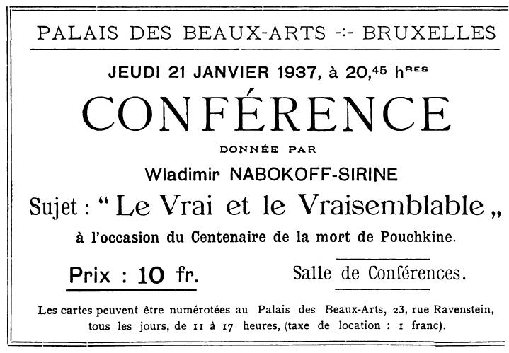 «Правда и Правдоподобие» Пушкинский доклад В. Набокова, Брюссель 1937