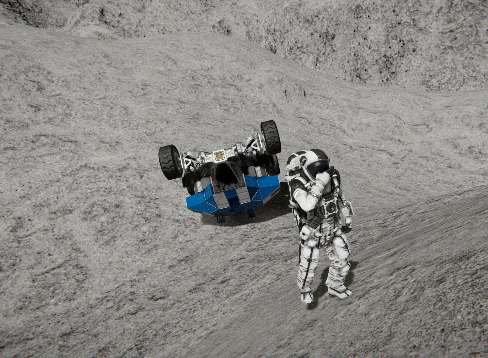 и ты, катапультировались, долетели до луны, собрались у этого грузовоза, он приметный. А корабль нужно запитать, чтоб к контейнерам доступ был постоянный. И системы обеспечения. Ты же не думал всё время в скафандре жить?