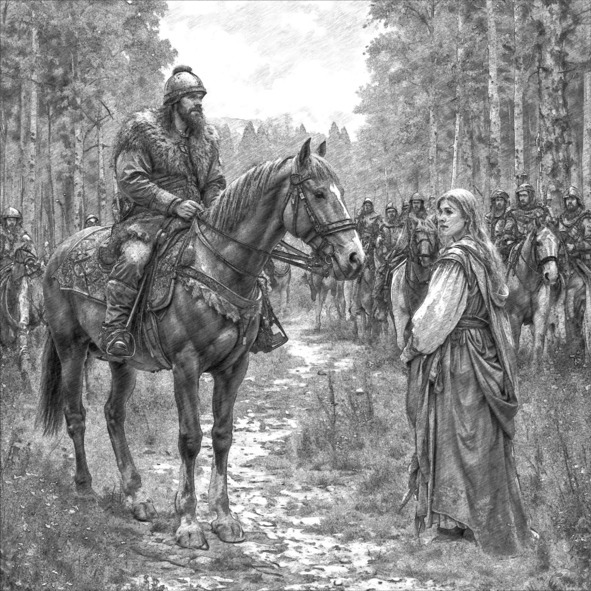 Оглядевшись по сторонам, и не обнаружив поблизости таковых гостей, отрок от испуга едва не свалился вниз, вжавшись в ствол дерева, обнимая его изо всех сил: вожак и с ним еще несколько человек отделились от основного войска и подошли к тому самому дереву, на котором он прятался. Взобраться высоко юнец не успел, хоть ветви и скрывали его снизу, но оттого стали слышны голоса чужаков еще лучше. Разглядел он и источник крика: это была та самая беглянка, что осталась без крова, ее прогнали из рода накануне за страшный сотворённый ею грех, ее никто из сородичей не имел теперь права принять. Держали окаянную некрепко, да она и не силилась вырываться, осознав всю безнадежность своего положения. Уйти от кметей, что при оружии, да верхом, не то, что девке малой, но и не всякому взрослому было под силу. Вскоре и вовсе ее отпустили. Шум листьев да ветер заглушал голоса, но расположившись на небольшой полянке у дерева, вождь, видимо, продолжал расспросы и девичий ее голосок выделялся, донеся до отрока отдельные слова.