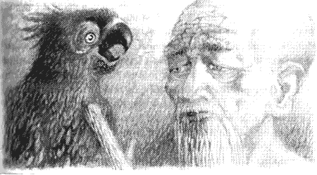 Звісно, я мав його не від самого народження. Звідки взятися йменню у пташеняти? Бідолашні мої батьки були звичайними, скромними папугами. Якби вони мали здатність мислити, нізащо б не повірили, яка жахлива доля чекає на їхнього круглоокого малюка, якого видмухнув із гнізда ураганний вітрюган, частий у моїх рідних краях.
