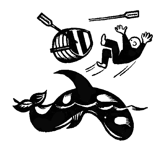 Профессора выбросило из нее. Вынырнув, он увидел, что черный плавник движется прямо к нему, а под водой белеет раскрытая пасть. Профессор бросил щетку в зияющий зев и услышал, как щелкнули зубы хищника.