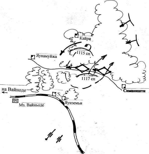 Отражение танковой контратаки противника в районе Яунмуйжа Симанищти.