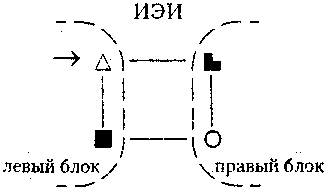 Поясним эту мысль. Снова обратимся к основному кольцу модели «А». Воспользуемся для этого схемой психических функций для интуитивно-этического интроверта (Есенин, Лирик). На схеме мы обозначили два вертикальных блока левый и правый. Зачастую с усилением одной из функций ведущего блока усиливается и слабая функция II горизонтального блока, то есть может оказаться усиленным один из вертикальных блоков левый или правый. Тогда характер основного психотипа приобретает оттенки другого психотипа. Например, при усилении левого блока психотипа ИЭИ мы имеем подтип ИЛИ (Лирик с подтипом Критика); при усилении правого блока ИЭИ с подтипом ЭСЭ (Лирик с подтипом Энтузиаста). Таким образом, усиление той или другой функции или блока функций приводит к усилению соответствующих черт характера.