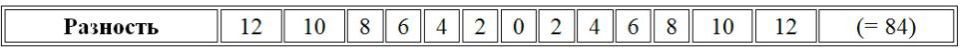Сумма ряда разностей равна 84 = 7 ×12 . Кроме того, 91-84 = 7 . Четное число 12 кратно 3, и его можно разложить на множители: 12 = 3 ×4; тогда как 84 = 7 ×3 ×4 .