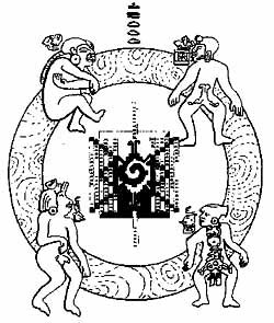 Предположим, что после своей материализации в Мезоамерике, запечатленной в воспоминаниях о четырех Туланах, несколько майянцев наладили отношения с ольмеками и проникли в высшую касту жрецов ягуара. В более поздней культуре Майя Верховный Жрец именовался «Балам» [Balam ], что означает «ягуар» или «жрец ягуара». Ассимиляция с ольмеками позволила майянцам внедрить в их традиции свою систему математических обозначений и «Священный Календарь»: таблицу непрерывных перестановок тринадцати чисел и двадцати направлений, превращенных специально для использования на нашей планете в священные иероглифические обозначения.