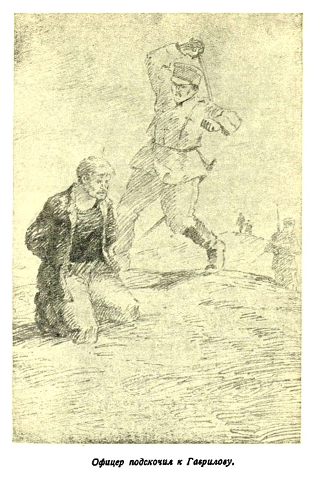 Офицер подскочил к Гаврилову и, как-то смешно подпрыгнув, со всего размаху опустил шашку ему на голову.