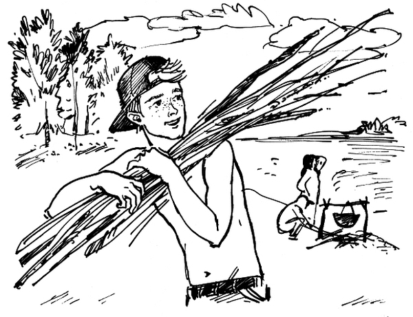Товарищи, не вставая, с гримасами крайнего напряжения сил передавали по цепочке тоненький прутик лозы их общий вклад в костер. Кто-то неосторожно передал его в руки классной. Та встала и с выразительным свистом рассекла им воздух. Мальчики повскакивали.