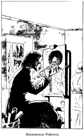 Я уже говорил, как меня поражали чистотой отделки, нежностью и, если так можно выразиться, женственностью кисти работы валаамских художников. Странно было бы уехать из монастыря, не познакомившись с теми, которые прятались под безразличную подпись: "трудами валаамских иноков".