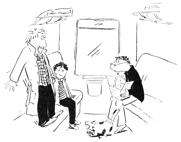 Кошка пусть убирается! заявил господин Белло, стоя на кресле. Похоже было, что ещё чуть-чуть и он от страха влезет на багажную полку.