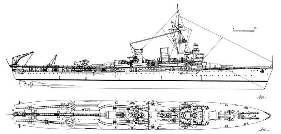 Вошел в состав шведского флота в 1934 году. При полном водоизмещении 5760 т. имел длину 144 м, ширину 15,4 м и осадку 5,5 м. Двухвалыш котлотурбинная главная энергетическая установка, суммарной мощностью ЗЗ000 л. с., обеспечивала максимальный ход 27 узлов. Артиллерийское вооружение составляли две двухорудийные 152-мм башни и два 152-мм казематных орудия в носовой надстройке, а также зенитные автоматы и два трехтрубных 533-мм торпедных аппарата. Борг, палуба, башни главного калибра и боевая рубка прикрывались 50-мм броней. Почти треть длины корабля занимало авиационное оборудование, включавшее в себя поворотную катапульту и площадку для открытого хранения 11 гидросамолетов. Под площадкой размещались масте(х кие, а еще ниже специальный погреб для хранения авиационного боезапаса, (.местом стоянки самолетов они сообщались специальными лифтами. В корме имелся крап для подъема гидросамолетов с воды.