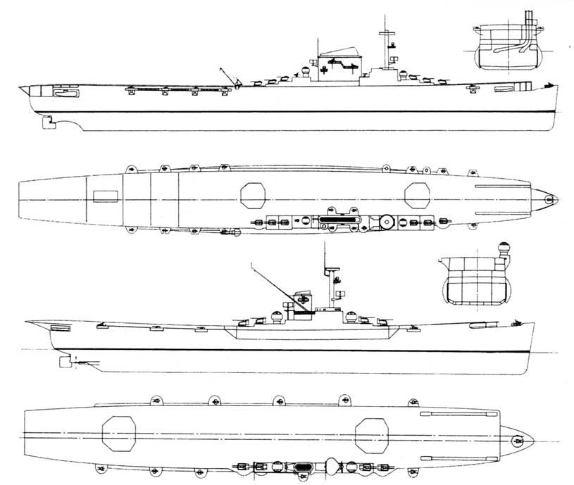 кораблестроения требовали для кораблей такого размера наличие и продольных переборок. Возникли также опасения относительно общей прочности корпуса. Наилучший вариант это разместить все авиационное оборудование на верхней палубе, но, как это видно на примере "Европы", обычно так не получается. Этот быстроходный лайнер, на первый взгляд, представлял собой заманчивый объект для переоборудования в авианосец. Его габариты давали надежную перспективу размещения значительного числа самолетов. Однако на этом корабле реально можно было оборудовать лишь один ангар, так как размещение второго потребовало бы объема работ неприемлемого даже только по временному фактору. Вследствие этого от переоборудования "Европы", как и "Гнейзенау", в декабре 1942 года отказались. Более того, верхняя палуба из-за ангара оказалась как бы вырезанной, а это уже общая прочность корабля.