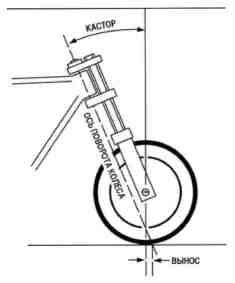 Кастор это угол между вертикалью и продольной осью поворота колеса, он измеряется в градусах. Вынос это расстояние между точкой, в которой колесо касается земли, и воображаемой точкой пересечения поверхности земли с осью поворота колеса.