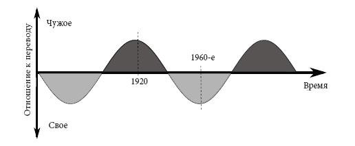 модель истории перевода можно зримо представить в виде маятника, который качается между дающей культурой и берущей культурой, ориентацией на чужое и ориентацией на свое, приноравливанием то к особенностям авторского текста, то к привычкам читателя, а в итоге между более строгим и более вольным переводом (рис. 1 (А, Б)) . В статье «Брюсов и буквализм» Гаспаров заканчивал историю перевода в России советской эпохой, которую дипломатично охарактеризовал словами «смягчение крайностей, программа ясности, легкости, верности традиционным ценностям русской словесной культуры». С тех пор прошло достаточно времени, чтобы стало заметным, как после падения железного занавеса маятник качнулся в обратную сторону.
