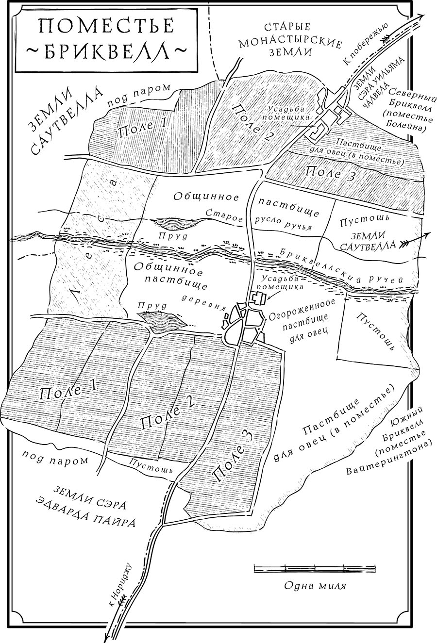 Участки небольшие, от десяти до пятнадцати акров, ответил Локвуд. Конечно, есть более обширные наделы, те, что выгорожены в отдельные фермы. Но с другой стороны, встречаются и убогие хижины, владельцы которых едва сводят концы с концами, нанимаясь работать к более богатым фермерам или же занимаясь различными ремеслами. Сами понимаете, после того как Болейн и Вайтерингтон превратили большинство своих полей в пастбища, спрос на наемный труд изрядно снизился. В Северном Бриквелле проживает двадцать пять семей, а в Южном более тридцати.