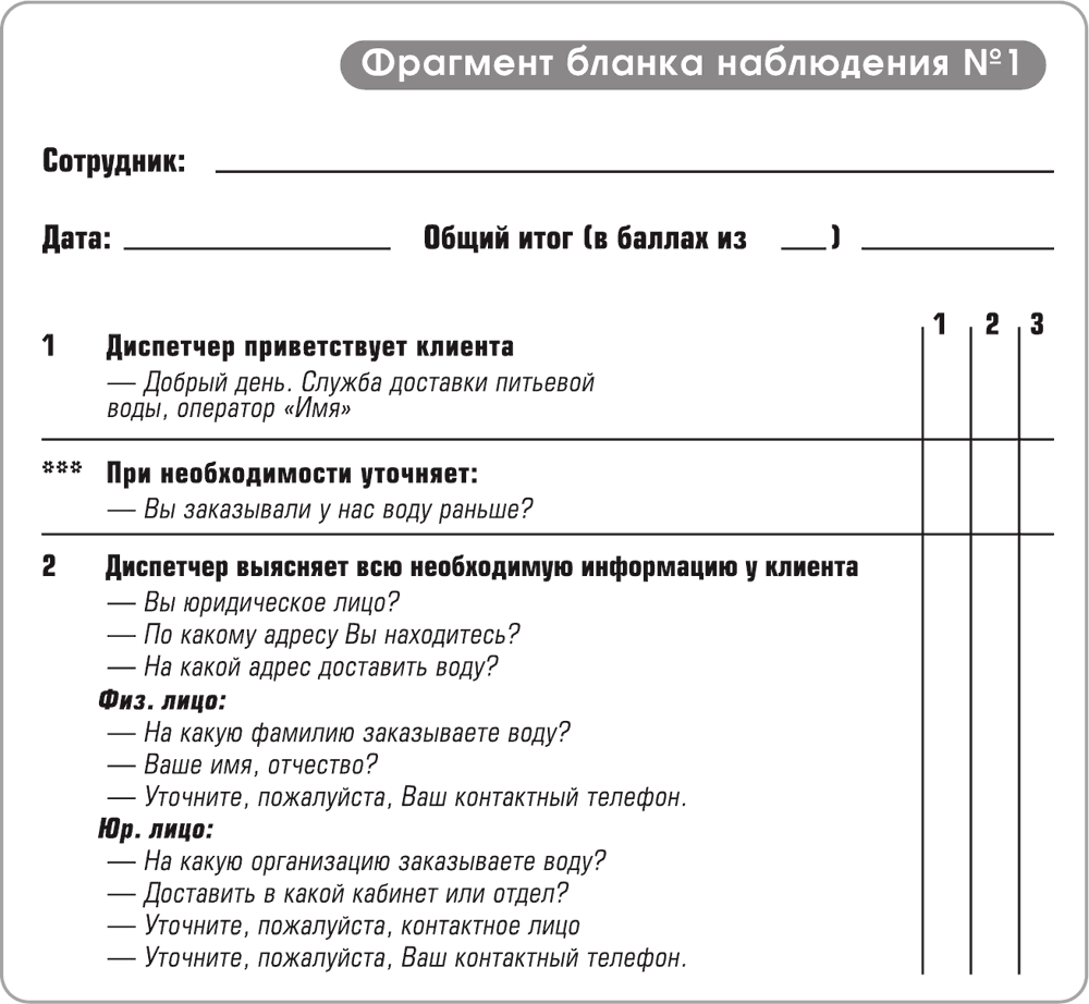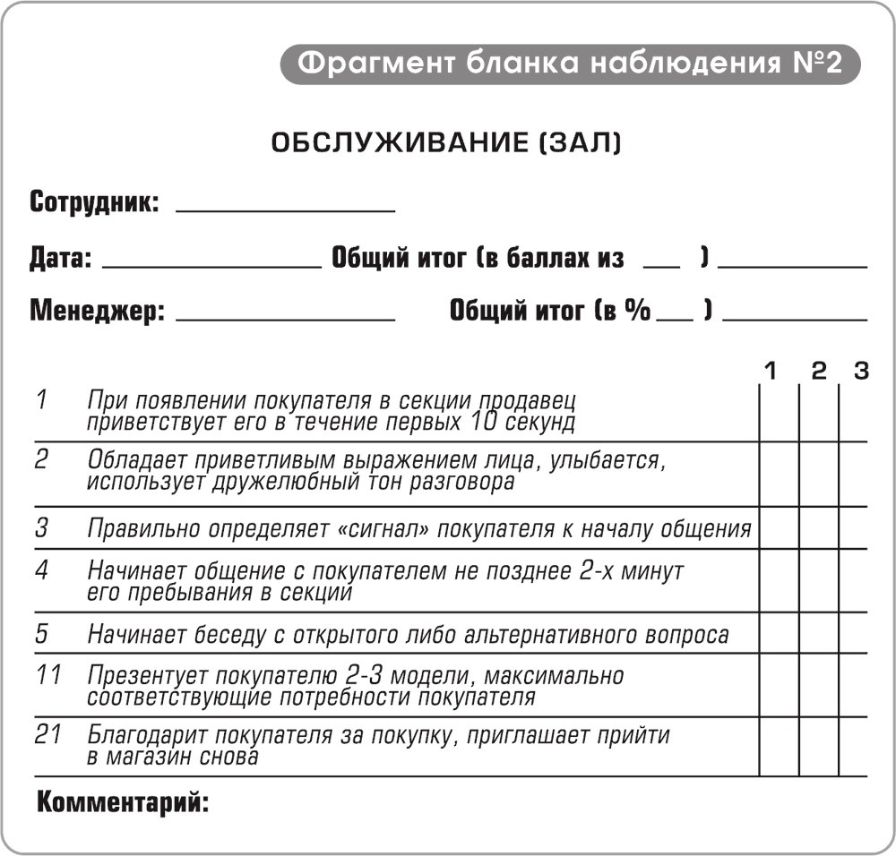 Как вариант можно использовать систему оценок «0, 1, 2», где «0» «не использовал», «1» «использовал, но допустил незначительные ошибки»: например, придал не ту интонацию или недостаточно четко выполнил прием. Если оценка «2», то сотрудник все навыки «использовал в полной мере».