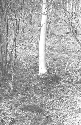 Рис. 19. Лишь весной, с началом сокодвижения, зубры активно объедают кору деревьев, пропитанную минеральными солями