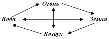 Итак, перед вами так называемый круг сотрудничества и подавления. Вертикальная и горизонтальная стрелки соединяют родственные стихии, лояльные друг к другу. Наклонные стрелки показывают, какая из стихий сильнее