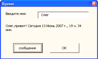 Label2.Caption = ima & ",привет! Сегодня " & Format(Now, «dddddd, hh ч. mm мин.»)