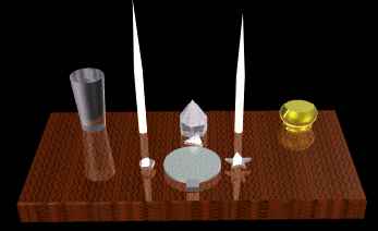 3. Создайте алтарь. Положите универсальную пентаграмму в центр алтаря в положении «вверх ногами» ("L" вверху). Сделайте то же самое с другими принадлежностями. Зарядите пентаграмму жизненной энергией. Сделайте то же самое с другими принадлежностями. Вы заряжаете принадлежности энергией жизни только один раз. Проецируйте энергию жизни так, как вы научились делать это в уроке 2. Поставьте 2 свечи дюймах в 8 за пентаграммой. У левой свечи поставьте чашку, с правой стороны курильницу ладана. Положите кристалл или пентаграмму на стол между свечами. Положите четыре элемента (треугольник, многоугольник, квадрат и пентаграмму) вокруг универсальной пентаграммы. Треугольник вверху, многоугольник слева, квадрат внизу, пентаграмму справа.