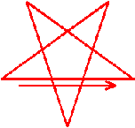[Перевернутая пентаграмма с одним концом вниз и двумя вверх. Перевернутая Пентаграмма Воздуха изображается с нижнего левого угла горизонтально вправо, затем вверх и влево, вниз в середину, вверх и вправо, вниз и влево, то есть против часовой стрелки. Другими словами, это обычная Пентаграмма Воздуха, повернутая на 180 градусов]