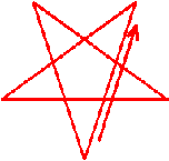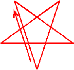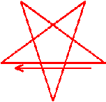 [На этот раз пройдите четверть круга. Пентаграмма изображается из нижнего угла против часовой стрелки, в верхний правый угол и так далее]
