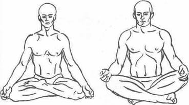 8. Положите правую ступню на левое бедро, а левую ступню на правое бедро. Руки положите на колени. Это падмасана. Она устанавливает ментальное равновесие. Она препятствует притоку крови к конечностям и посылает кровь наверх, способствуя медитации.