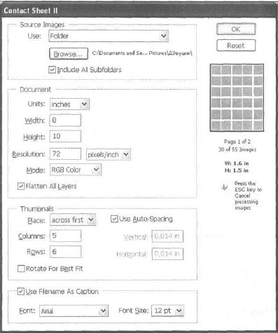 Рис. В41. Окно Contact Sheet II