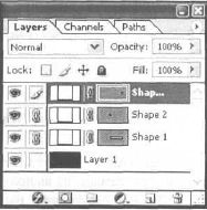 Связать слои можно, поставив значок скрепки слева от необходимых слоев (рис. 6.4). А для сливания их в один выполните комбинацию клавиш <Ctrl>+<E>