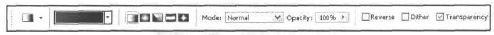 Посмотрите опции инструмента на рис. 6.5. Вам нужно использовать линейный градиент для осуществления плавного перехода между светлым и темным цветом.