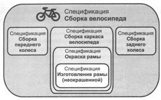 В состав изделия может входить другое, промежуточное изделие (полуфабрикат), которое описывается собственной спецификацией, в состав промежуточного изделия может входить другой полуфабрикат со своей спецификацией, и т. д. Взаимосвязь спецификации конечного изделия и спецификаций промежуточных изделий может быть представлена структурой, устроенной по принципу «матрешки».