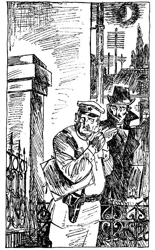 Постоял, потом не торопясь пошел обратно. Обо что-то споткнулся, чуть-чуть не упал и вдруг остановился и замер, прильнувши к стенкам одной из двуколок. К маленькой железной калитке в углу каменной стены направлялись две тени. Подошли и остановились. Кто-то чиркнул спичкой, и при свете ее Сергей ясно увидел лицо невысокого черного человека с небольшими усиками.