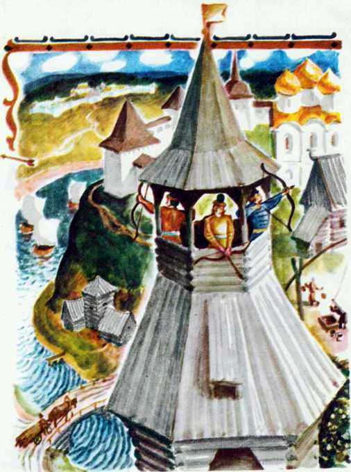 Наутро проснулся Иван-царевич, у квакуши хлеб давно готов и такой славный, что ни вздумать, ни взгадать, только в сказке сказать! Изукрашен хлеб разными хитростями, по бокам видны города царские и с заставами.