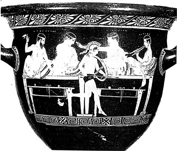 Общие обеды сисситии. Близкие обычаи общих обедов я нашел на Крите. Там они назывались андриями. Мы все, спартанцы, едим за одним обеденным столом. Нет, конечно же, не за одним длинным столом такого стола, чтобы вокруг него разместились все спартанцы, не существует. Мы собираемся по 20-30 человек, вместе вкушаем пищу и вместе бьемся в одном строю. Это дружеский стол. За ним не бывает людей, которым мы не доверяем. Когда к столу присоединяется молодой воин, только общее согласие всех, определяемое тайным голосованием, решает, присоединится он к нашему столу или нет. Но наши столы не закрытое тайное общество. Часто мы берем с собой своих детей, чтобы они впитывали нашу культуру. Присутствие детей заставляет взрослых следить за своим поведением и языком, а дети в свою очередь учатся нашей знаменитой лаконской речи.