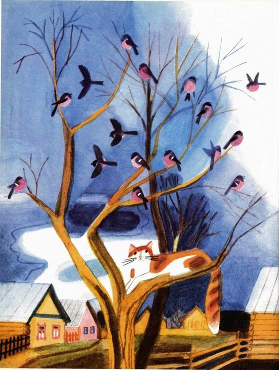 Снегири хоть целый год и не видели котов, а соображают. Всё-таки у котов хвост, а у яблок хвостик.